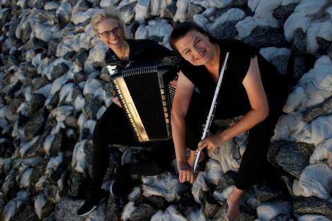 Edda & Flute – das sind die Konzertakkordeonistin Edda Liebermann sowie die Flötistin und Sängerin Frauke Stenger, beide in Norden zuhause und beide in unserem Landstrich wohlbekannt. Die beiden Musikerinnen spielen nicht bloß virtuos auf, sondern sie warten auch mit eigenen Arrangements auf, die sie mit literarischen und lyrischen Texten verweben. Über jedem ihrer Programme spannt sich so ein konzeptioneller Schirm.